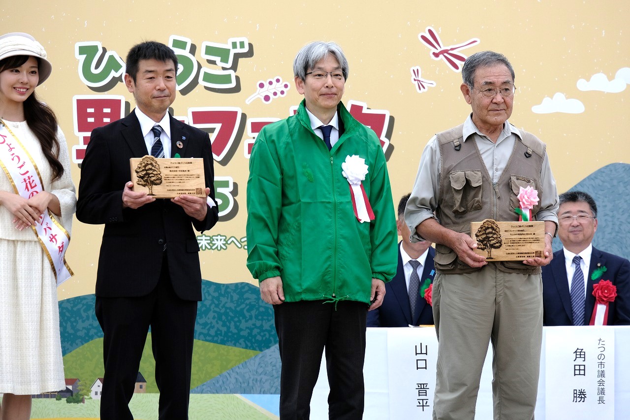 12日に開催されたひょうご里山フェスタ2025において、兵庫県副知事 服部洋平 様から表彰楯が贈られました。